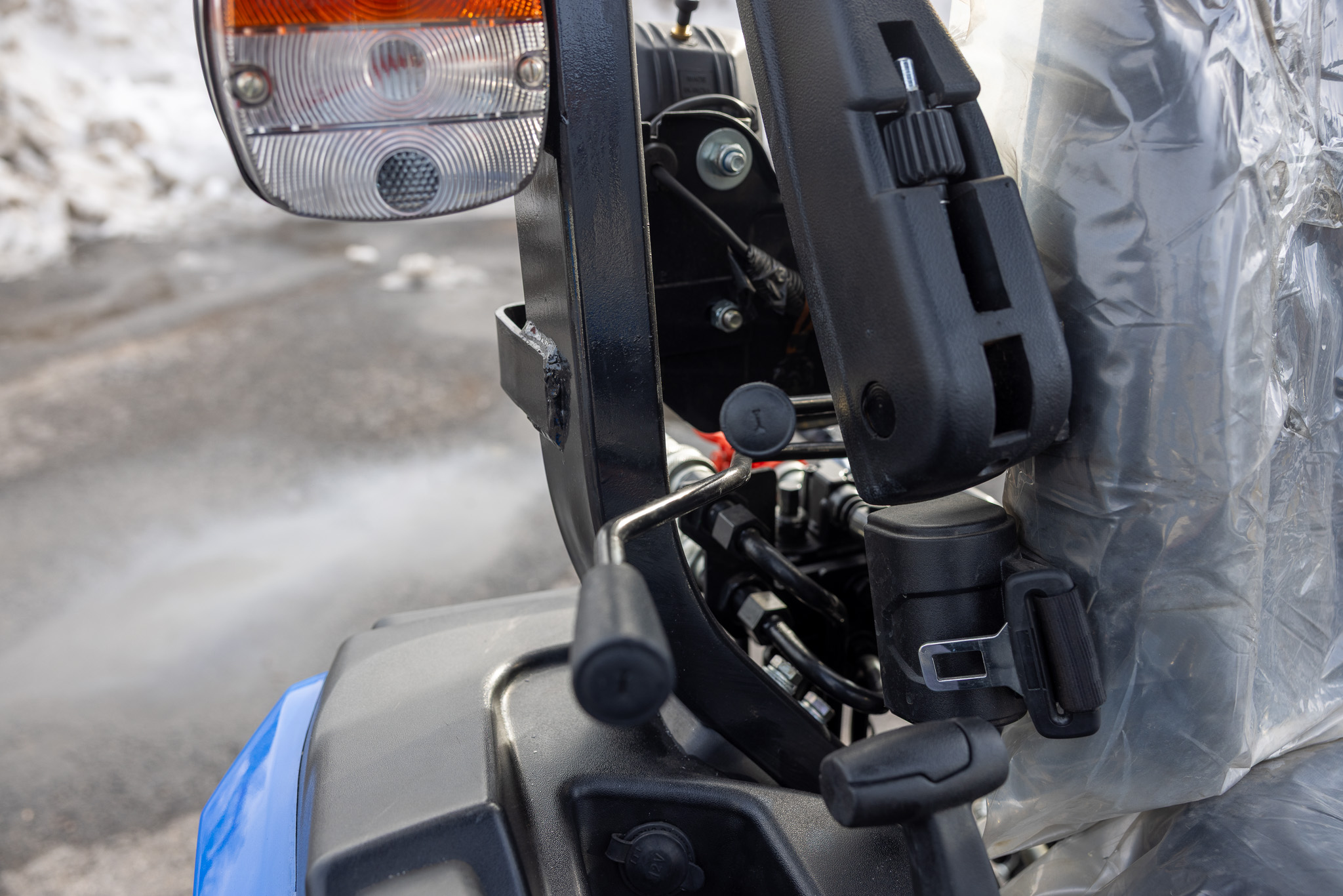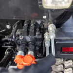 - Kolme hydrauliikkalohkoa takana , joista yksi varustettu kellunnalla
